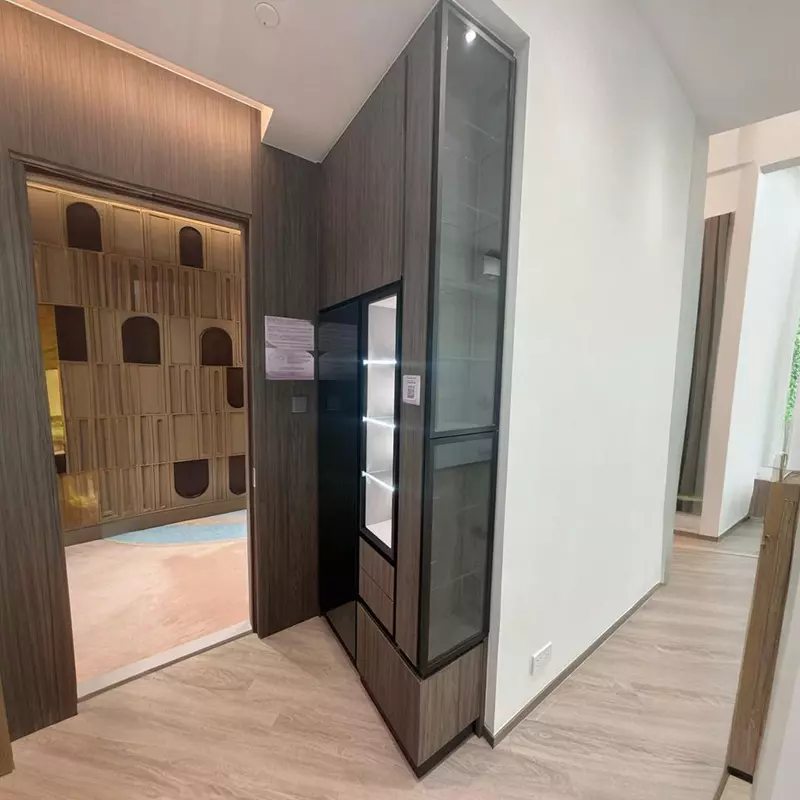 Hidden design (optional) : Equipped with adjustable shelves or storage areas with doors, it ingeniously conceals daily clutter, leaving only a neat and beautiful appearance.